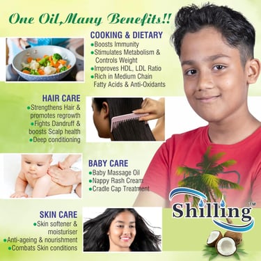 Welcome to Shilling Oil Private Limited, your gateway to exceptional virgin coconut oil products. Founded in 2022, we pride ourselves on purity and quality, offering a range of premium oils, including extra virgin coconut oil and virgin baby massage oil. Experience excellence with Shilling today!